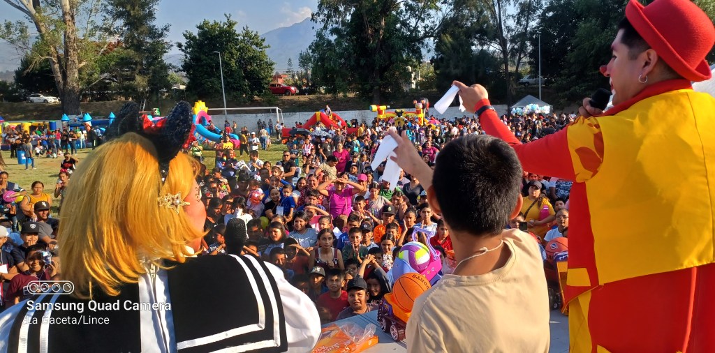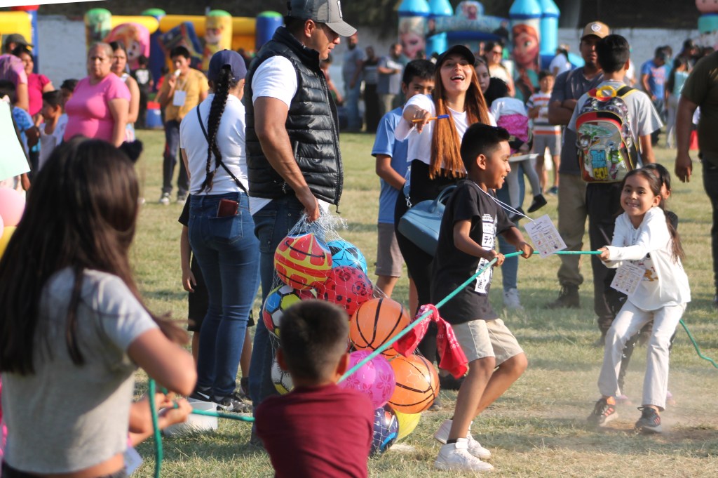 Hubo cientos de regalos, rifas de bicicletas, payasos, brincolines, lotería, pinta caritas y pinta alcancías, juegos de destreza, atletismo, así como hot dogs con agua fresca de sabores.