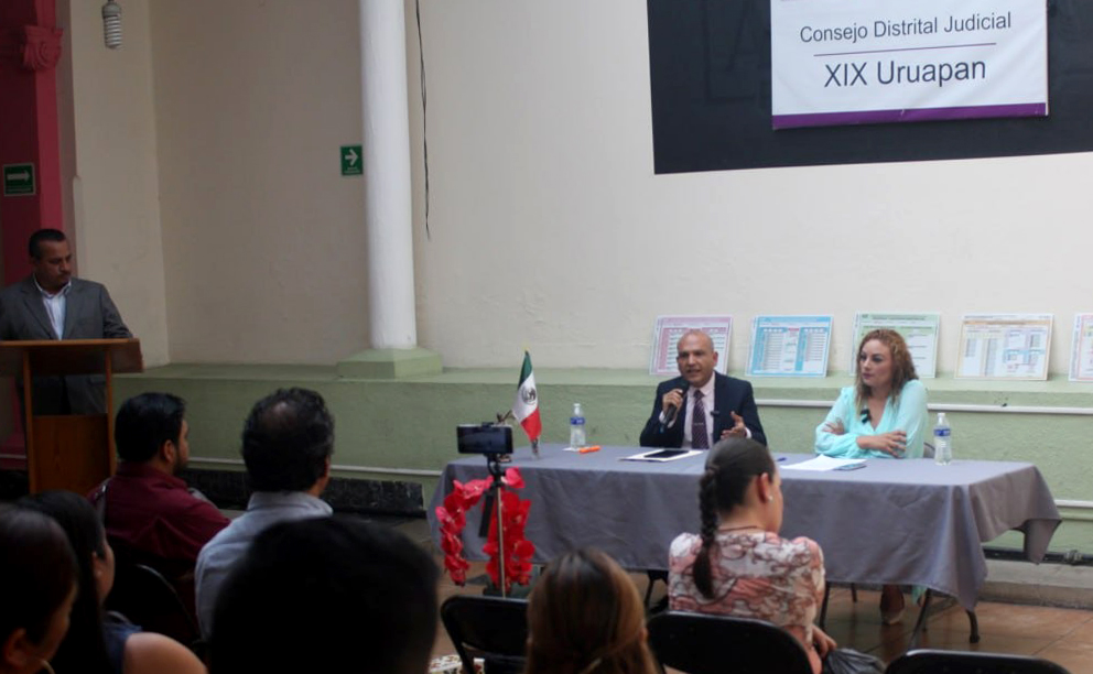 URUAPAN, Michoacán, 13 de mayo de 2025.- El Comité Distrital Judicial XIX de Uruapan, llevó a cabo el Foro de Debate Judicial 2025, en el que participaron 2 de los 5 candidatos que aparecen en la planilla verde pistache, ellos son, Maricela Padilla Rebollar y Marco Antonio Padilla Pimentel.