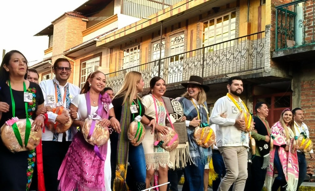 Al frente, la alcaldesa Yuliana Torres Jerónimo y sus invitados, como Brissa Arroyo, Itzé Camacho y Conrado Paz Torres, la presidenta municipal de Salvador Escalante, Dayana Pérez Mendoza, así como representantes de Turismo y Casart.