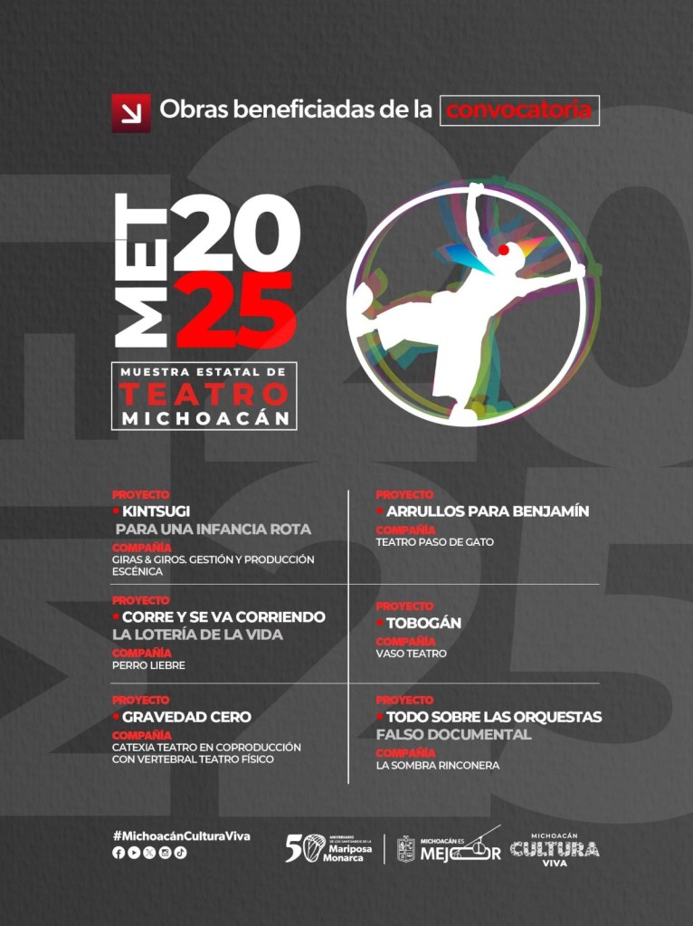 URUAPAN, Michoacán, 18 de junio de 2025.- La obra de teatro “Arrullos para Benjamín”, escrita por Hasam Díaz, ha sido seleccionada por la Secretaría de Cultura de Michoacán (Secum), para participar, en agosto, en la muestra estatal de teatro 2025 y que representará a la ciudad de Uruapan.