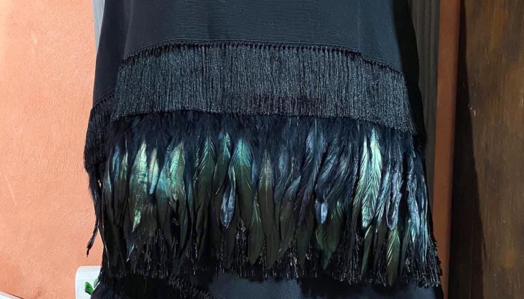 Esta presencia de Bautista y de Michoacán, se debe a la exposición “Aves de México”, como parte de una colaboración con la reconocida diseñadora Carla Fernández. Es así que se presenta una impresionante túnica de algodón, un pantalón de viscosa con rapacejo de plumas, y el alma de la tradición michoacana, un rebozo de telar de cintura con rapacejo de plumas de cuervo, tejido por las manos sabias de Feliciana.