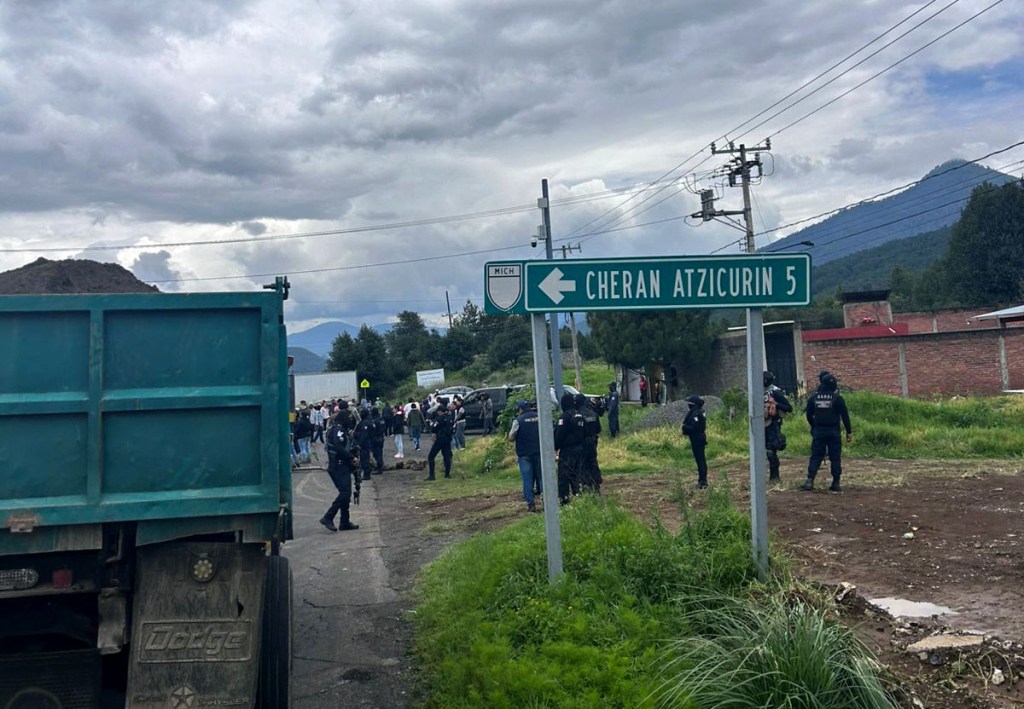 ARANZA (Paracho), Michoacán, 18 de julio de 2025.– Portando armas largas de grueso calibre, encapuchados, cortando cartucho y amagando a un contingente de habitantes de esta comunidad, llegó un grupo de policías e intentó reprimir una manifestación pacífica, en el entronque de la desviación a Cheranatzicurín.