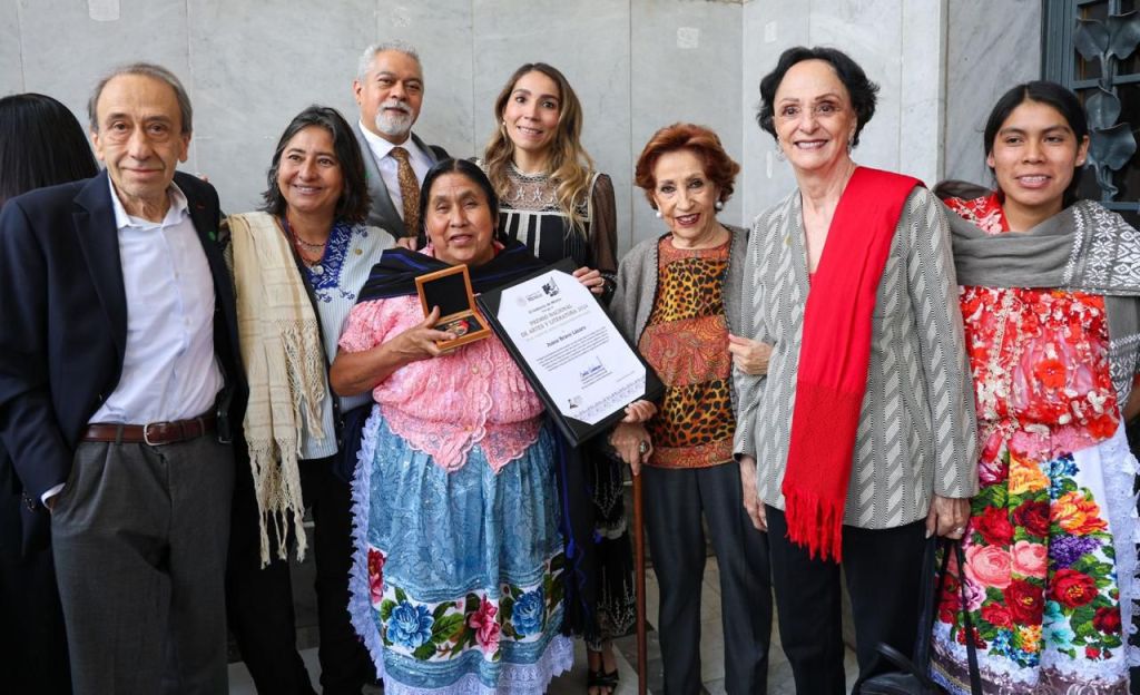 Ciudad de México, México, 22 de julio de 2025.- La maestra cocinera tradicional y maestra artesana, Juana Bravo Lázaro, recibió este día el Premio Nacional de Artes y Literatura 2024, en la categoría de Artes y Tradiciones Populares, teniendo como escenario el Palacio de Bellas Artes, en la Ciudad de México.