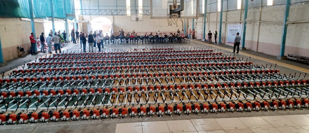 URUAPAN, Michoacán, 19 de agosto de 2025.- Como una forma de apoyar a los productores agrícolas de las diferentes comunidades y algunas colonias de Uruapan, se hizo entrega de la segunda etapa del programa desbrozadoras a bajo costo, haciendo un total de mil 67.
