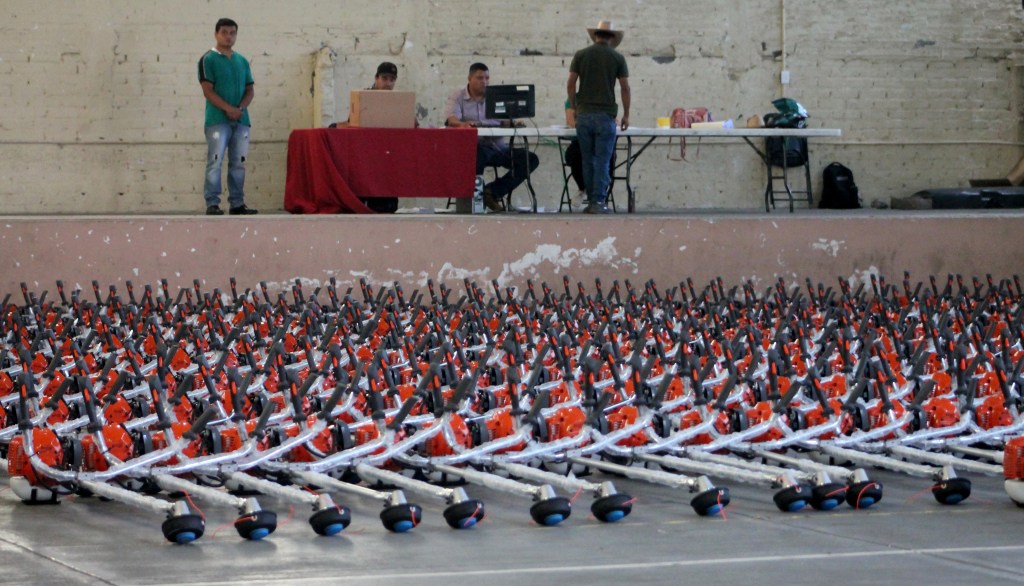 Durante la entrega, en un evento realizado en el auditorio ejidal de Zumpimito, la directora de Desarrollo Rural, Dulce Consuelo Mata Álvarez, dijo que, en una primera etapa, en días pasados, se entregaron 584 desbrozadoras o “güiros”.