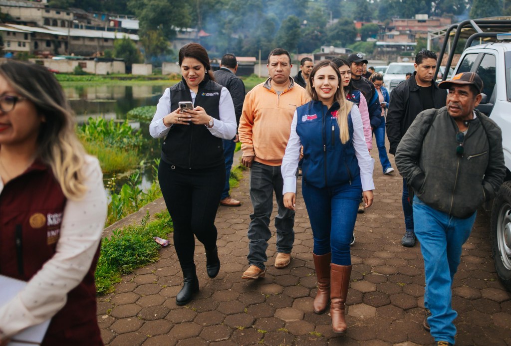 OPOPEO (Salvador Escalante), Michoacán, 29 de agosto de 2025.– La presidenta municipal, Dayana Pérez Mendoza, acompañó un recorrido en esta tenencia de Opopeo, con el personal de la Comisión Nacional del Agua (Conagua) y del Instituto Mexicano de la Propiedad Industrial (IMPI), con el propósito de revisar el sistema de agua potable de la localidad.