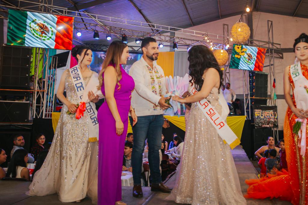 OPOPEO (Salvador Escalante), Michoacán, 22 de septiembre de 2025.- La presidenta municipal de Salvador Escalante, Dayana Pérez Mendoza, acompañó al comité organizador en el certamen de elección de la Reina de la Silla, en el marco de la edición 22 de la Feria de la Silla en esta comunidad.