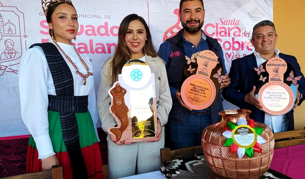 Dos de ellos son, a Santa Clara del Cobre, en la categoría Mejor Pueblo Mágico, como lugar para vivir nuestra tradición artesanal y la Feria Nacional del Cobre Martillado, como el mejor festival cultural contemporáneo.