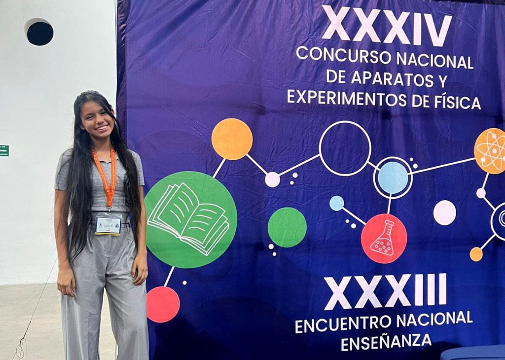 San Luis Potosí, San Luis Potosí, 2 de octubre de 2025.- Arena Nicolle Villagómez Hernández, alumna del Colegio de Estudios Científicos y Tecnológicos del Estado de Michoacán (Cecytem), plantel Las Guacamayas, obtuvo el pase para la Olimpiada Iberoamericana de Física, tras participar en el Concurso Nacional de Aparatos y Experimentos de Física, donde se expusieron 60 proyectos y participaron más de 200 estudiantes de nivel medio superior.