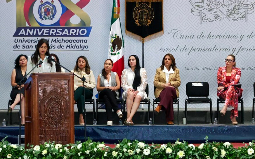 MORELIA, Michoacán, 15 de octubre de 2025.- “Con los universitarios todo, sin los universitarios nada”, pronunció la secretaria de Educación en el Estado (SEE), Gabriela Molina, al acudir al acto de aniversario 108 de la Universidad Michoacana de San Nicolás de Hidalgo (UMSNH).
