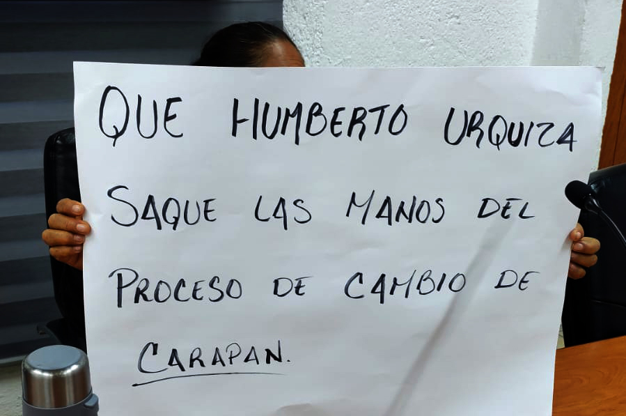 La población de Carapan, manifiesta personas non gratas, a Humberto Urquiza y Orlando Aragón, el primero, de Gobierno del Estado y el segundo, de Emancipaciones.