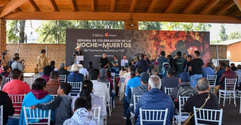 PÁTZCUARO, Michoacán, 24 de octubre de 2025.– El presidente municipal de Pátzcuaro, Julio Arreola, entregó recursos a comunidades que forman parte de la emblemática celebración de la Noche de Ánimas, acto encabezado por el secretario de Turismo del Estado, Roberto Monroy García, con el objetivo de fortalecer las celebraciones tradicionales de la región lacustre.
