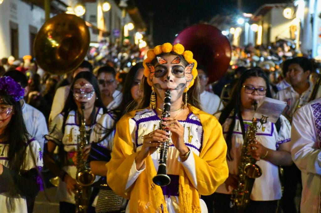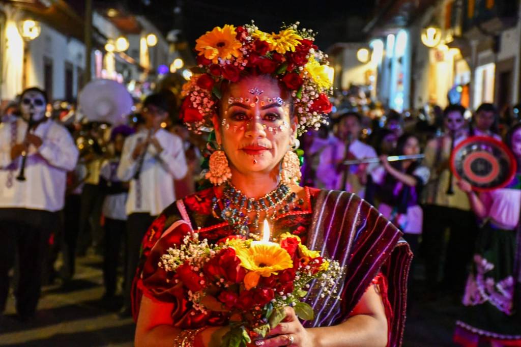 Con un recorrido que iluminó las principales calles del Centro Histórico, el desfile reunió a más de 3 mil participantes caracterizados con atuendos tradicionales purhépechas, catrinas y catrines, flores de cempasúchil y veladoras que formaron un auténtico camino de luz y color hacia el corazón de Pátzcuaro.