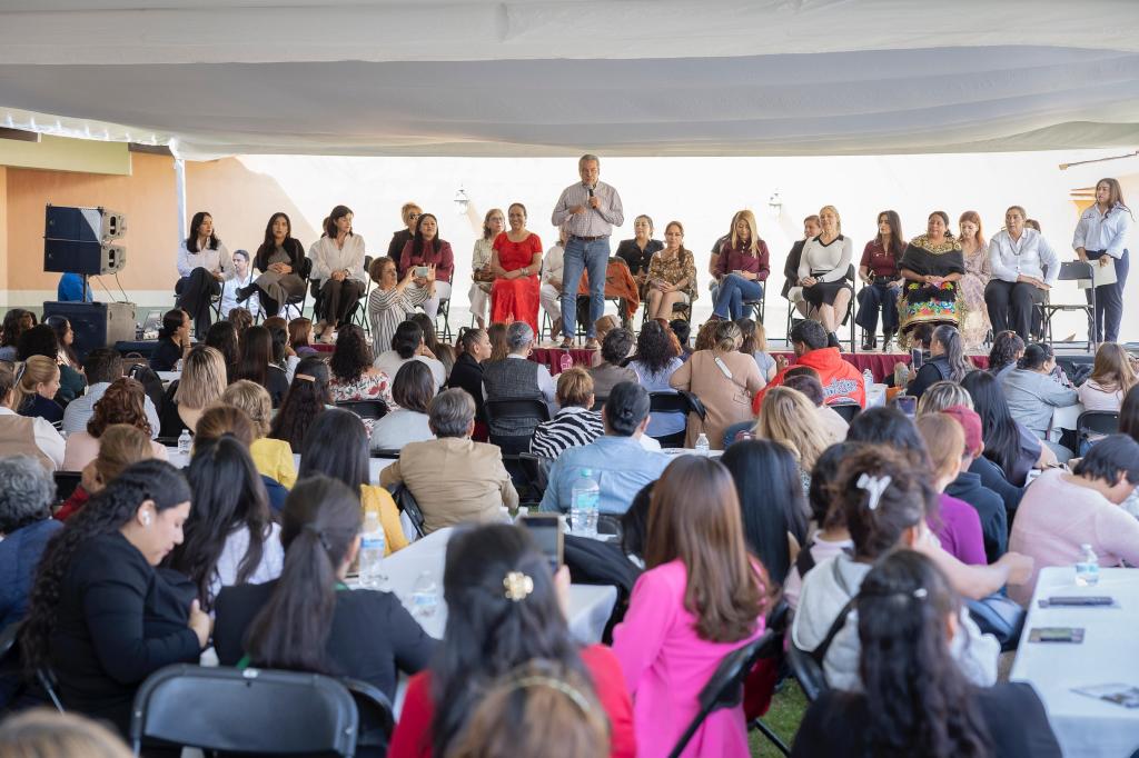 El encuentro, tuvo como fin compartir las acciones que se contemplan para el sector de mujeres, dentro del Plan Michoacán, como los 50 mil créditos a la palabra que se entregarán en el 2026, el incremento a 10 mil mujeres tejedoras de la patria, para realizar actividades en su comunidad, así como la apertura de un Centro LIBRE en cada uno de los 113 municipios de la entidad.