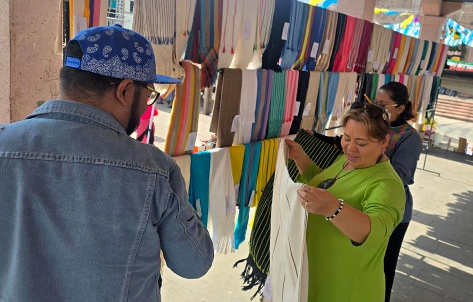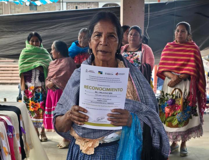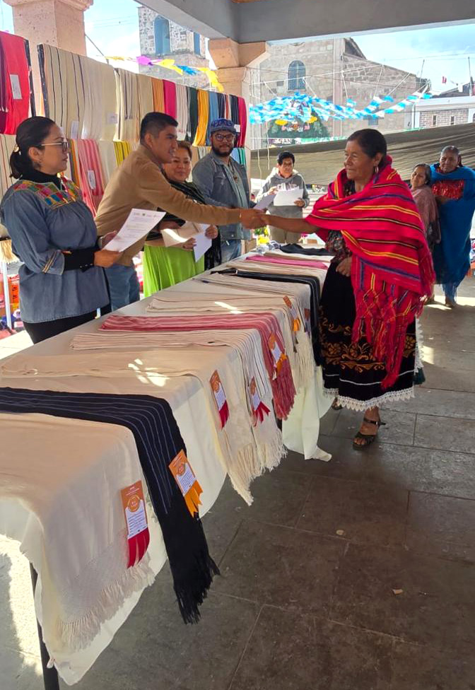 TURÍCUARO (Nahuatzen), Michoacán, 4 de diciembre de 2025.- Durante la edición 39 del concurso artesanal de textil de algodón, en esta comunidad, se mostraron excelentes rebozos y manteles, elaborados con la técnica ancestral de telar de cintura.
