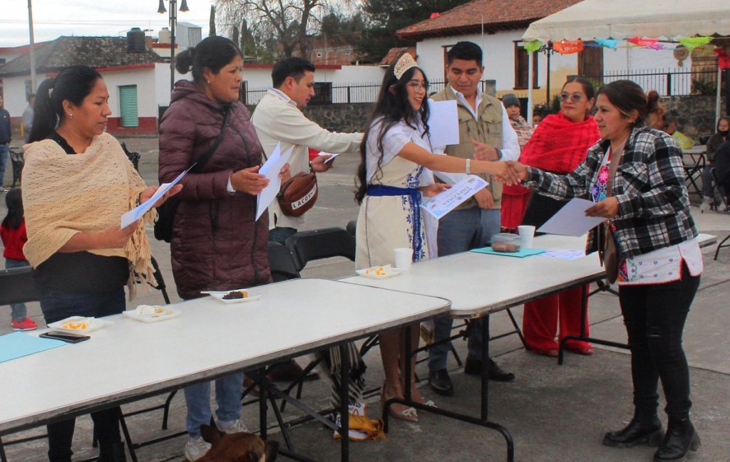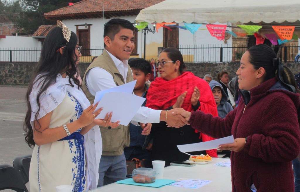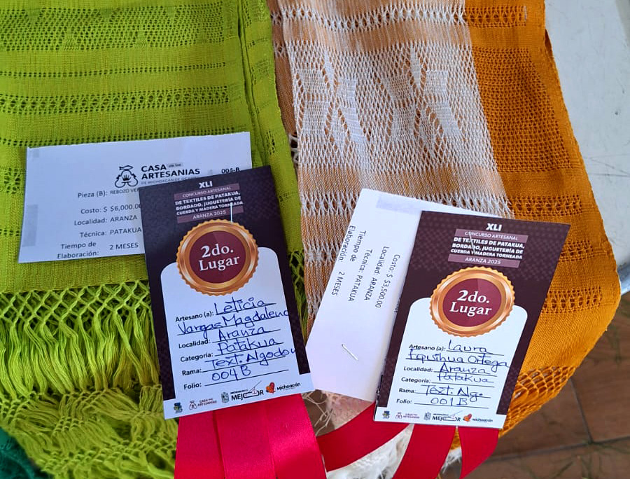 ARANZA (Paracho), Michoacán, 11 de diciembre de 2025.- En la plaza principal de esta comunidad originaria, se llevó a cabo la premiación a los 17 ganadores del concurso artesanal textil de patakua, bordado, juguete de cuerda y madera torneada, por parte del personal de la Casa de las Artesanías (Casart).