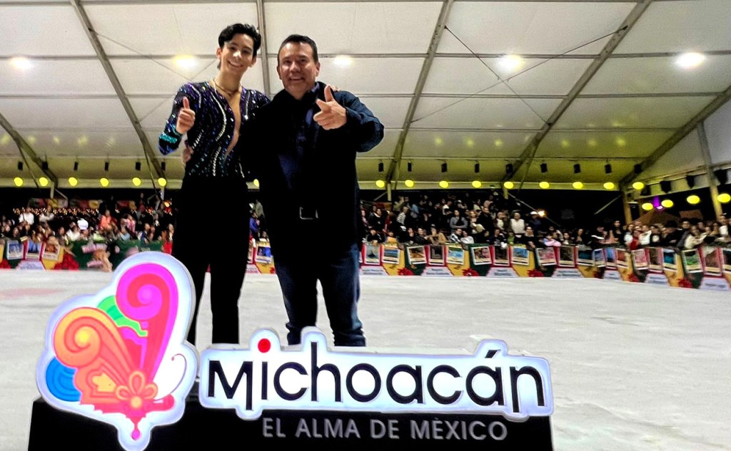 Acompañado por la patinadora artística originaria de Apatzingán, Azalea Contreras, el joven originario de Jalisco, entregó una rutina llena de energía, talento y música que entusiasmó a todos los asistentes al escuchar los temas como “Santa Claus llegó a la ciudad” de Luis Miguel y “Adiós amor” de Juan Gabriel.