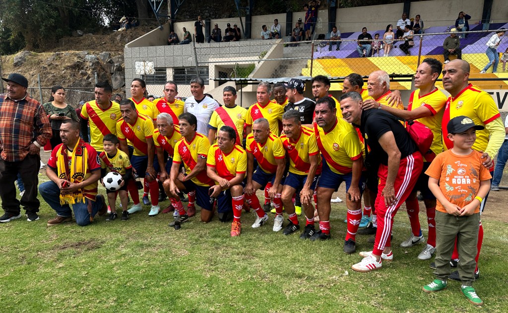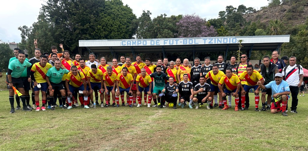 Nuevo Parangaricutiro, Michoacán, 12 de enero de 2026.– El juego de leyendas del Atlético Morelia contra un combinado local, en la cancha Tzindio, se llevó a cabo en medio de un gran ambiente y convivencia familiar. Los Canarios, una pléyade de jugadores de la mejor época del futbol profesional de la capital del estado.