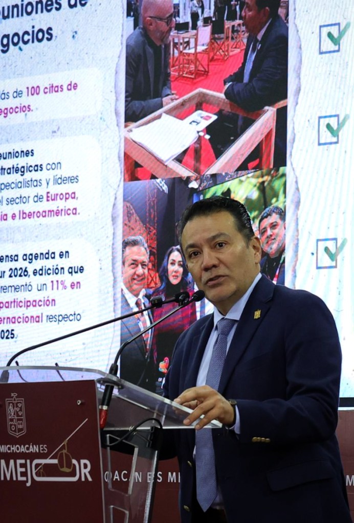 MORELIA, Michoacán, 26 de enero de 2026.- Michoacán alcanzó una proyección global sin precedentes, en la Feria Internacional de Turismo (Fitur) 2026 en Madrid. Con el respaldo de la Federación, el estado potenció su presencia ante miles de asistentes en la 46 edición del encuentro turístico más importante de Iberoamérica, donde México participó por primera vez como país socio, informó Roberto Monroy García, titular de la Secretaría de Turismo de Michoacán (Sectur).