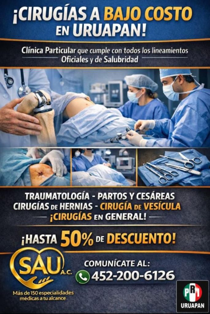 URUAPAN, Michoacán, 18 de febrero de 2026.- Una de las principales místicas del Partido Revolucionario Institucional (PRI), es el de apoyar a los sectores más vulnerados y el sector salud, es vital para la población, por ello, se gestionó el apoyo del 50 por ciento de descuento, en consultas y cirugías, en hospitales particulares de la ciudad.