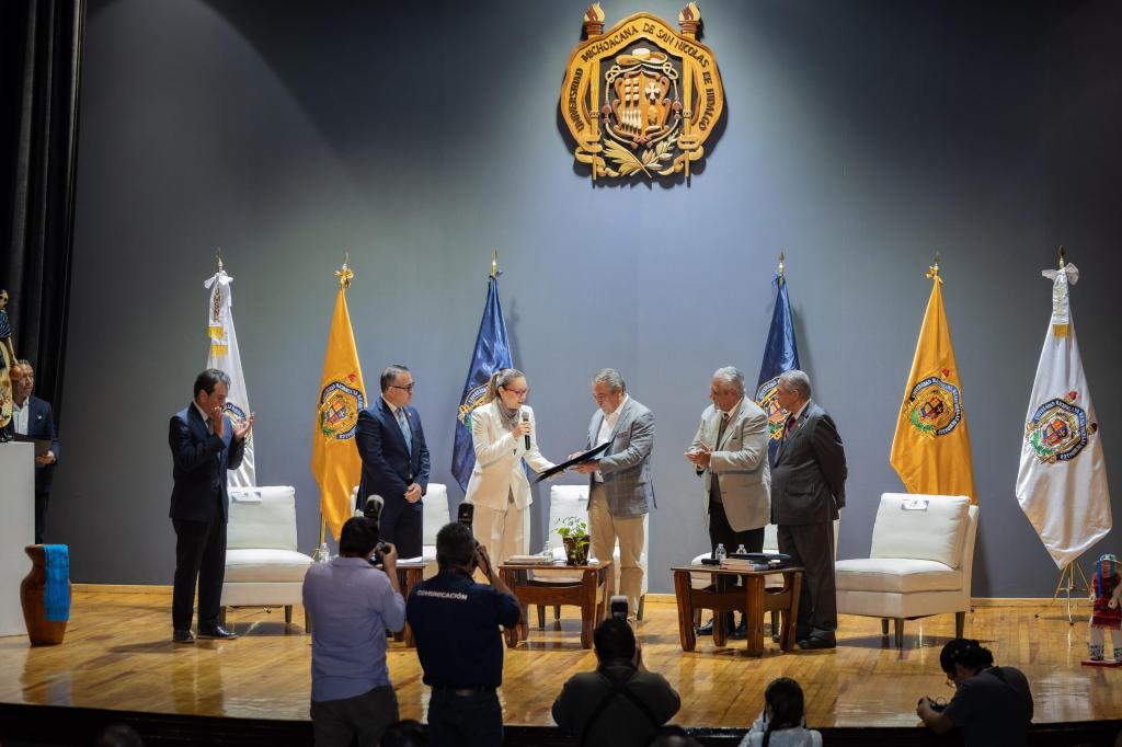En su calidad de presidente de la Comisión de Educación del Senado de la República, Raúl Morón, expuso tres ejes fundamentales para la evolución de la Universidad. El primero de ellos, referente a la dignidad laboral, en referencia a la necesidad de asegurar condiciones de trabajo y esquemas de jubilación dignos para el personal académico y administrativo, reconociéndolos como el motor que sostiene la excelencia nicolaita.
