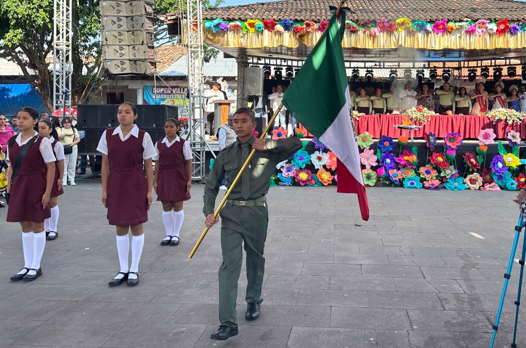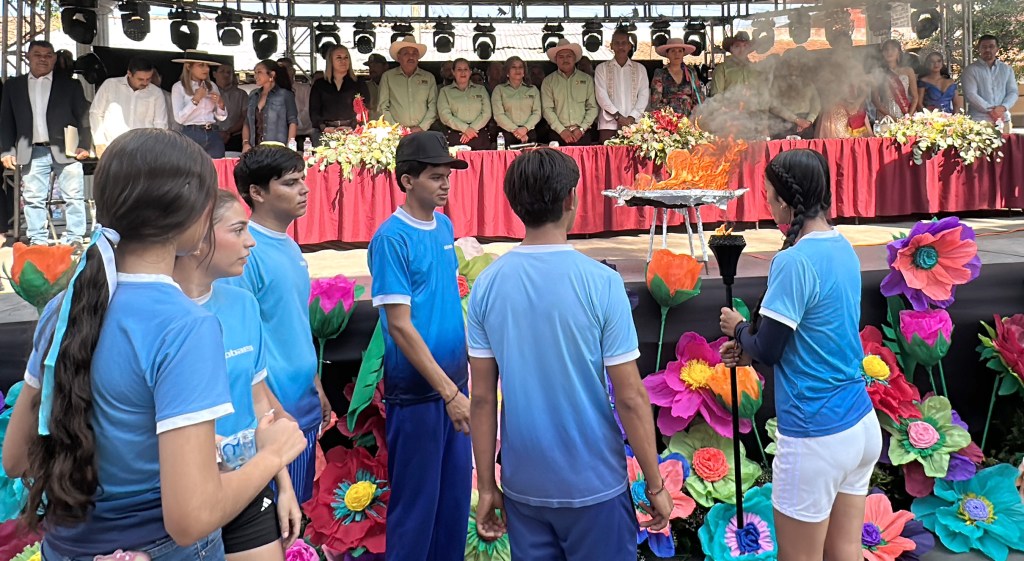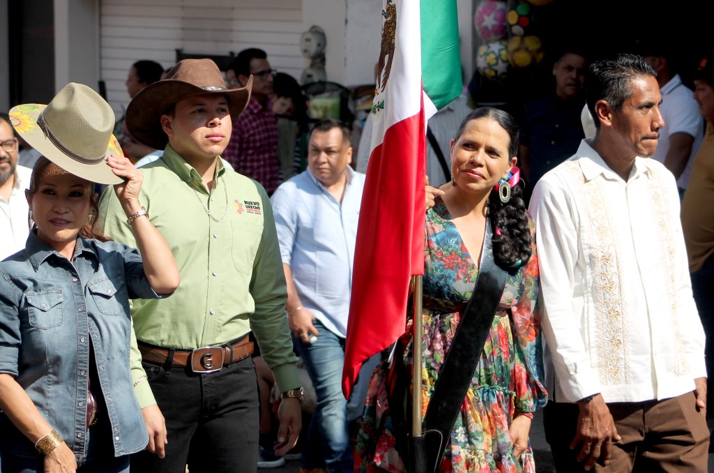 El acto cívico en la plaza principal, con escolta y banda de guerra del Colegio de Bachilleres; arribo de antorcha conmemorativa, posteriormente un colorido desfile por las principales calles, desde educación inicial hasta la media superior, misión cultural, ejidatarios, ganaderos, quienes acompañaron a la comitiva, encabezada por la presidenta municipal.