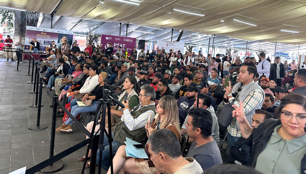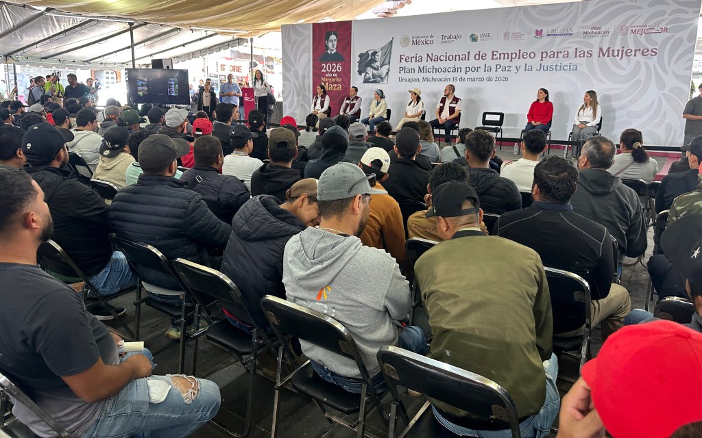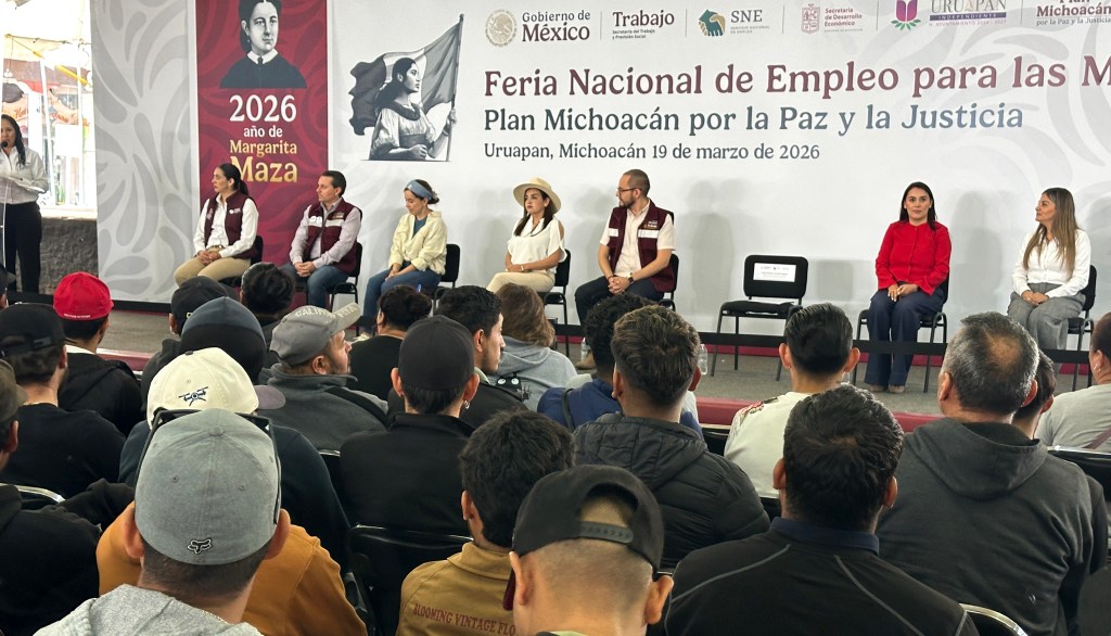 URUAPAN, Michoacán, 19 de marzo de 2026.- Una gran afluencia se registró en la Feria del Empleo, efectuada en la plaza principal de esta ciudad, dedicada, de manera especial, para las mujeres, pero también 200 vacantes para trabajadores agrícola para Canadá.