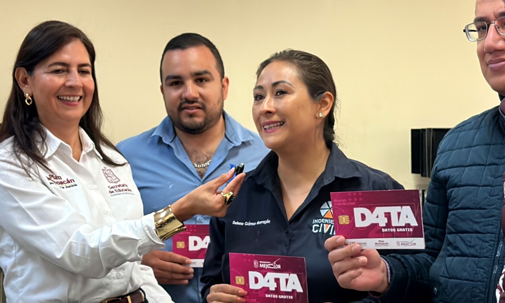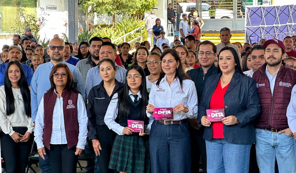 URUAPAN, Michoacán, 23 de marzo de 2026.- La titular de la Secretaría de Educación en el estado (SEE), Gaby Molina, presidió la entrega de tarjetas DATA, para internet gratis a los alumnos de educación media superior y superior; inauguró dos aulas y entregó pintura para dignificación de varios planteles de la región.