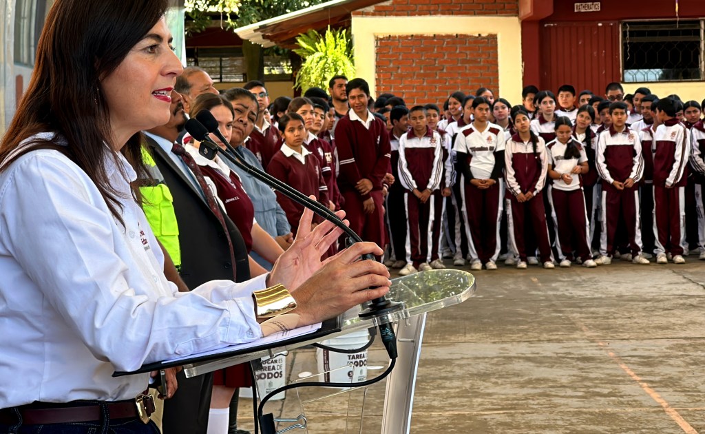 Ahí, Gaby Molina enfatizó que Uruapan, vive hoy una gran transformación educativa; en este año, la región tendrá una inversión histórica en infraestructura educativa, como nunca antes lo tuvo.