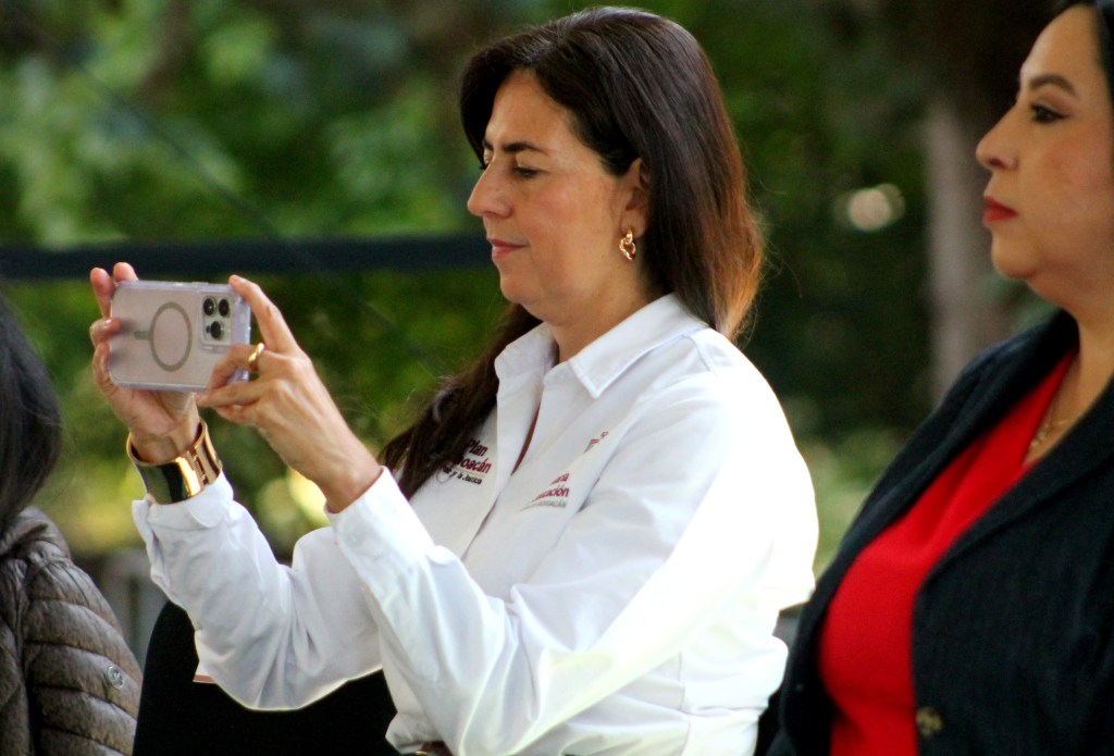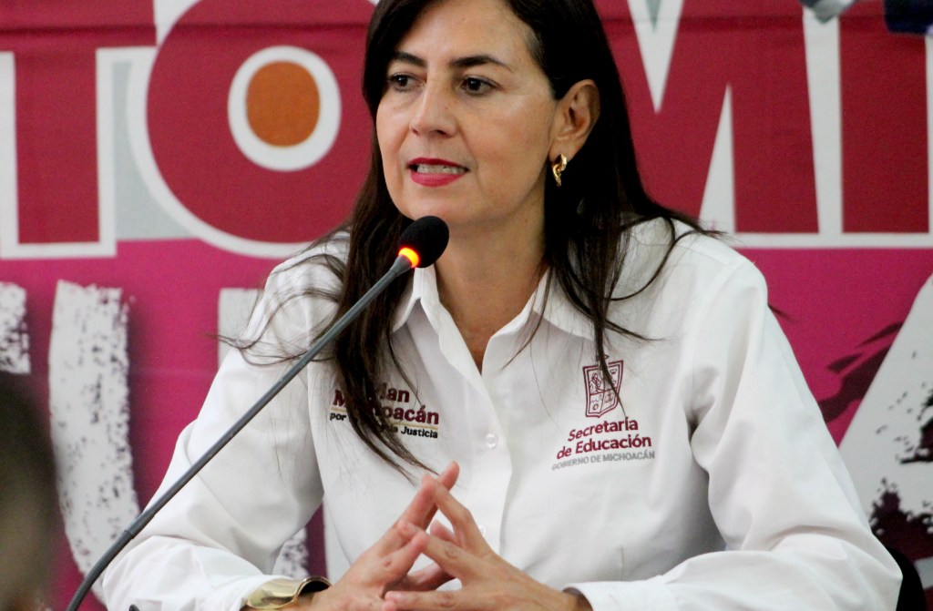 Ante los representantes de medios de comunicación, Gaby Molina destacó los diferentes programas educativos, como acceso a las becas y la próxima creación en Uruapan, de la Universidad Rosario Castellanos.