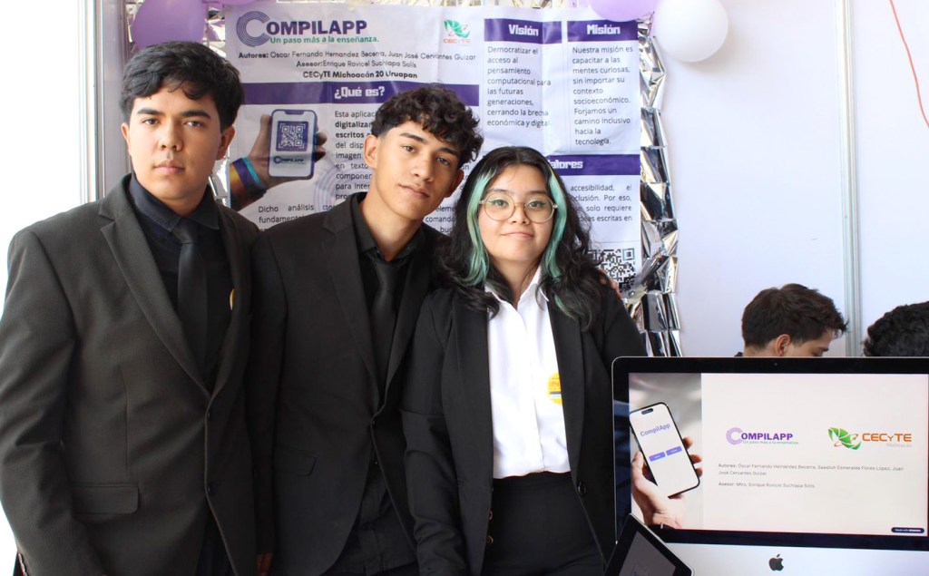 URUAPAN, Michoacán, 27 de marzo de 2026.- El talento de los alumnos del Colegio de Estudios Científicos y Tecnológicos de Michoacán (Cecytem), plantel Uruapan, que dirige Yuliana Gómez Cortés, cruzará fronteras, Saasiluh Flores López, Oscar Hernández Becerra y Juan Cervantes Guízar, obtuvieron su pase a la Feria de Ciencia Joven Brasil 2026, tras desarrollar CompilAPP, una herramienta innovadora que simplifica el aprendizaje de la programación. El encuentro internacional se llevará a cabo el próximo mes de diciembre.