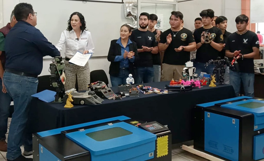 URUAPAN, Michoacán, 27 de marzo de 2026.– El Gobierno del Estado, a través del Instituto de Educación Media Superior y Superior (Iemsys), que encabeza Mariana Sosa Olmeda, hizo entrega de equipo especializado, al club de robótica DeerBotics, del Instituto Tecnológico Superior de Uruapan (ITSU).