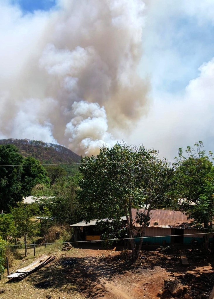 NUEVO URECHO, 8 de abril de 2026.– Han transcurrido 24 horas desde que inició el incendio forestal, en el cerro del ejido La Cebadilla, en la parte oriente de esta cabecera municipal, distante unos 12 kilómetros, en donde hasta el momento, se trata de controlar, para evitar siga propagándose.