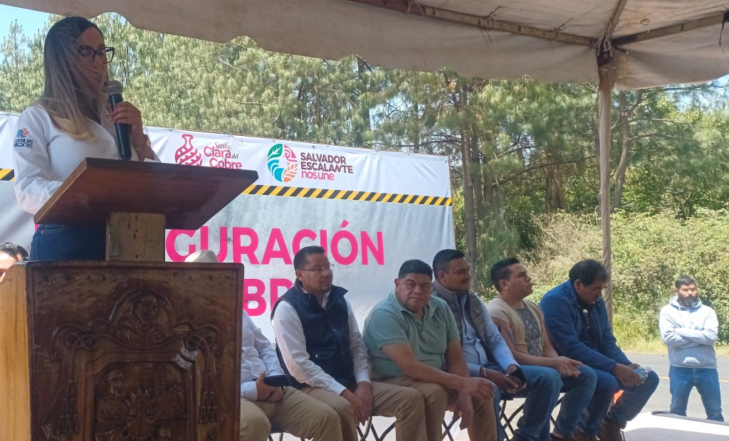 CUITZITAN (Salvador Escalante), Michoacán, 10 de abril de 2026.– Las autoridades municipales, encabezadas por la alcaldesa Dayana Pérez Mendoza y vecinos de doce comunidades, participaron en la inauguración de la rehabilitación de la carretera, Cuitzitán-Paramuén-Íxtaro, en una longitud de 11 kilómetros y 600 metros.