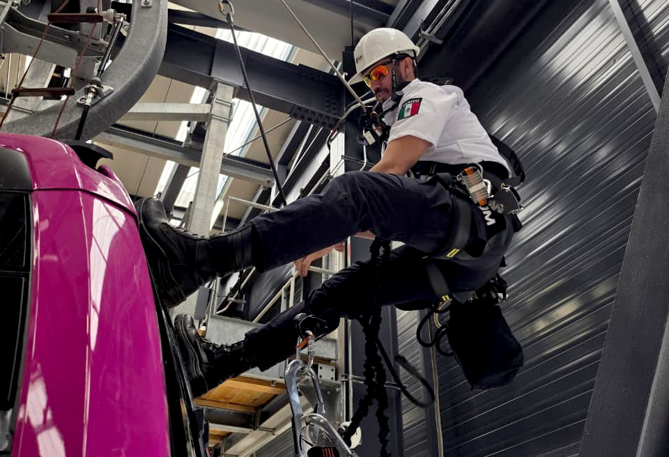 Los elementos del CRUM, fortalecieron sus habilidades operativas en escenarios de emergencia en altura, para evacuación segura de pacientes desde cabinas, técnicas de descenso vertical y mediante sistemas de tirolesa, así como el traslado de pacientes entre cabinas en pleno vuelo.